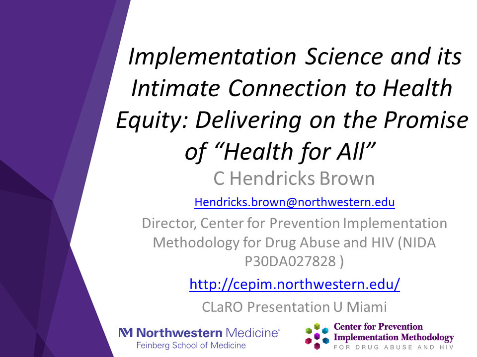 SPEAKER: C. Hendricks Brown, PhD, Principal Investigator; Director of the Center for Prevention Implementation Methodology (Ce-PIM) at Northwestern University’s Feinberg School of Medicine